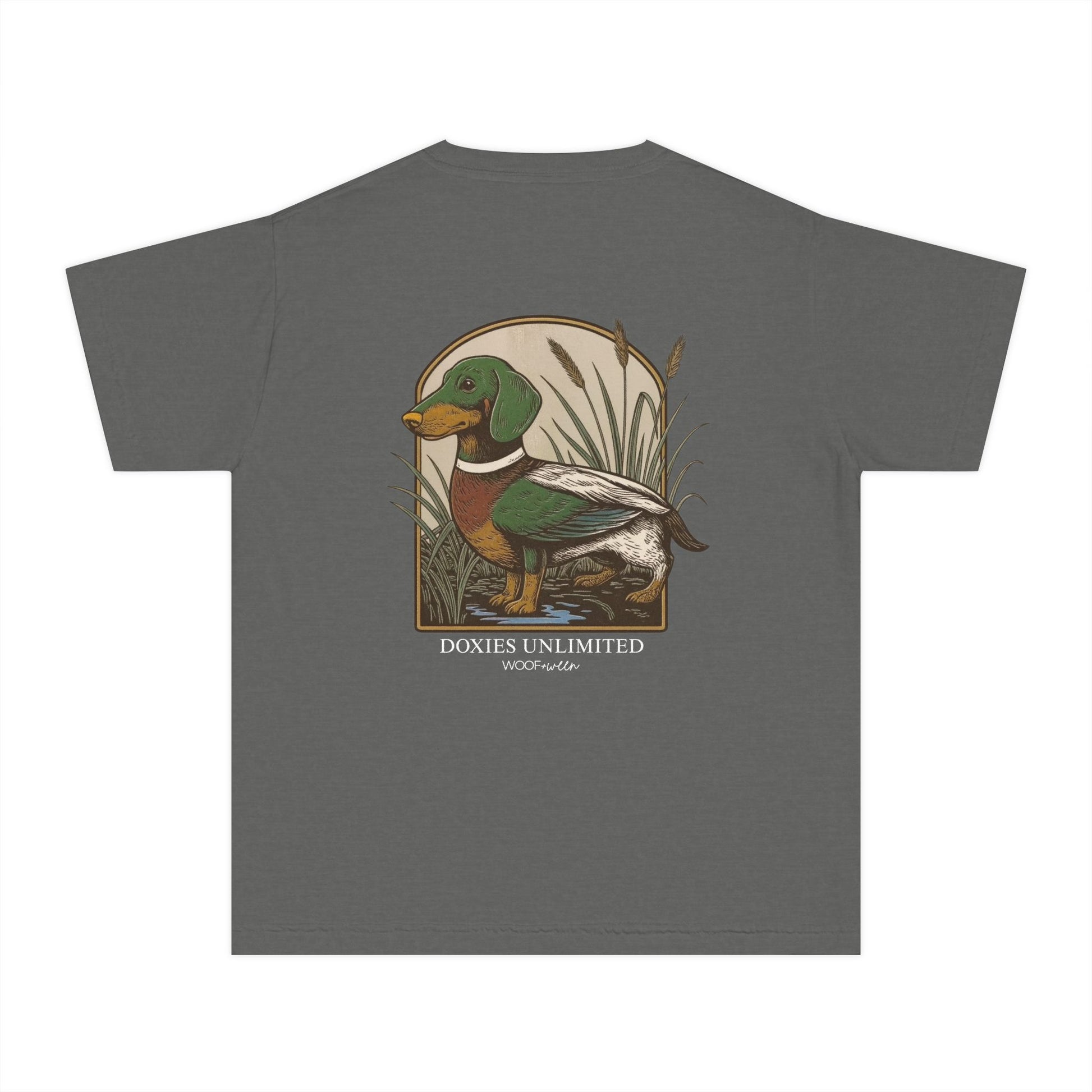 Our duck camo dachshund tee is now availible in youth sizing on your favorite comfort colors tees!