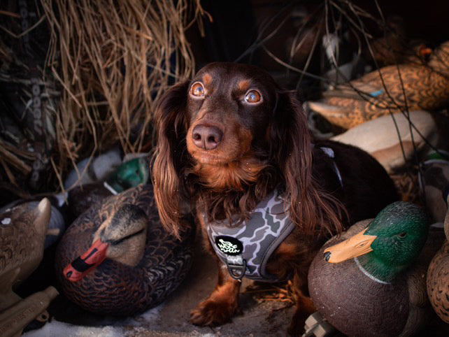 Our most popular Duck Camo dog harness collection featuring matching dog harnesses, leashes, collars, waste bag holders, bows, and coordinating apparel made for the duck camo loving dog moms and dog dads. Designed for comfort, fit, and everyday wear, these matching duck camo dog accessories are perfect for dachshunds, small dogs, and outdoor, camo-loving pet parents who want a complete look. From adjustable dog harness sets to matching leash and collar bundles, each duck camo dog harness outfit combines function with lightweight comfort, secure fit, and standout duck camo patterns perfect for those that love duck camo.